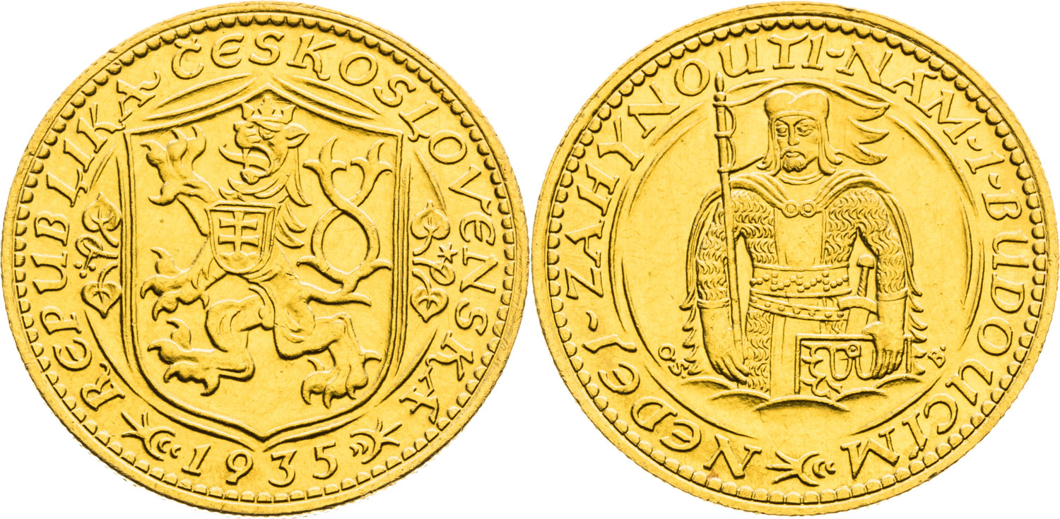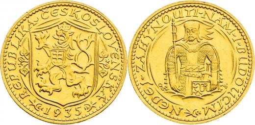 ČSR (1918-1939) Dukát 1935, Kremnica, J. Benda, O. Španiel, 3,49 g, 19,75 mm, Au, M&CH CSR1D-005, Valovič CSD2, Novotný 16, Raženo 13 178 ks.