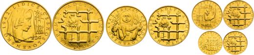 ČSSR (1960-1989) Sada zlatých medailí 1972 (4 ks), Lidice - Ležáky. Sada na pamět padlým a umučeným. (10, 5, 2 a 1 Dukát), Kremnica, Z. Kolářský, Au, RR! Velmi vzácné!, M&CH CSSR-MED6, Bez etue a certifikátu.Vyraženo pouze 125 sad!