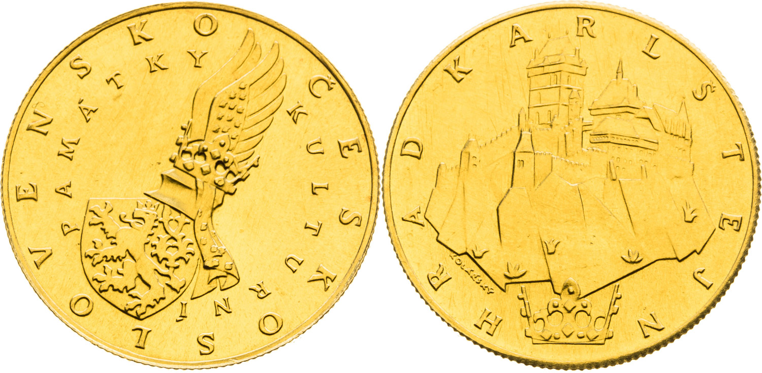 ČSSR (1960-1989) Zlatá medaile 1974 (Dukát), Hrady a zámky - Karlštejn, Kremnica, Z. Kolářský, 3,55 g, 20 mm, Au, R! Vzácná!, M&CH CSSR-MED11, Raženo 150 ks.