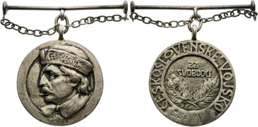 ČSR (1918 - 1948) Medaile Jana Žižky z Trocnova, Za svobodu, I. typ, Karel Babka, Cu, R! Vzácná!, Novotný 1, VM-3, Postříbřená. Vyznamenání #28.Délka raménka 51 mm, bez stuhy