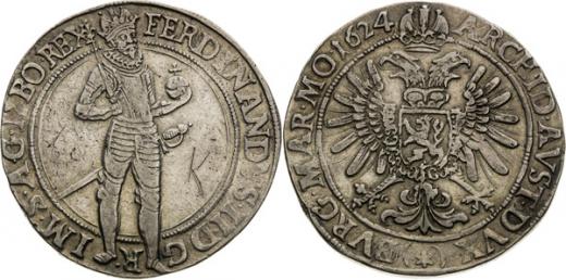 Tolar 1624, Kutná Hora, Šebestián Höltzl, 29,04 g, 41 mm, Ag, Halačka 798, Dietiker 720,