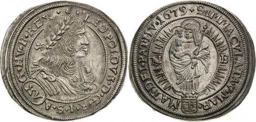 XV Krejcar 1679, Nagybánya, 6,40 g, 29,9 mm, Ag, Herinek 1074, Höllhuber NB 79.1.1,