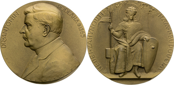 Bronzová medaile 1924, Dr. Antonín Podlaha, Kremnica, J. Šejnost, 128,15 g, 70 mm, Bronz (Bronze), Boháč 060b,