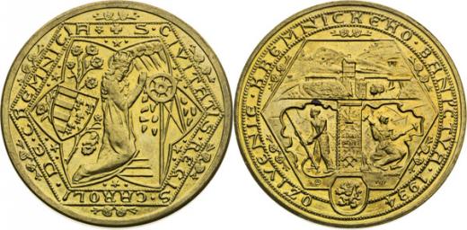 Medaile 1934 (R1971), Oživení kremnického banictva (5 Dukát), Kremnica, Anton Hám, 13,79 g, 33,8 mm, Mosaz,