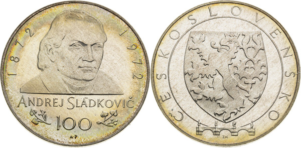 Nerealizovaný návrh pamětní mince 20 Kčs 1972 - A. Sládkovič. Medaile byla vydaná společností ARTIA.