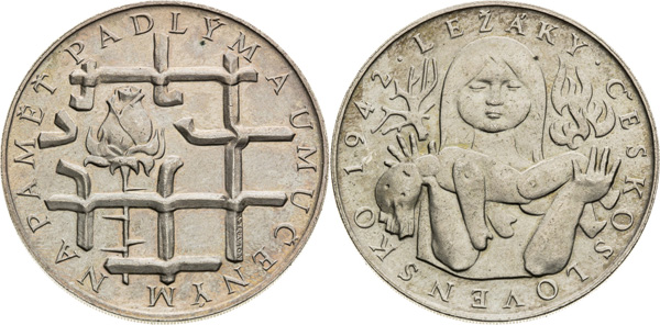 Stříbrná medaile 1972 (5 Dukát), Na paměť padlým a umučeným - Ležáky, Kremnica, Z.Kolářský, 34 mm, Ag, M&CH CSSRM-06,