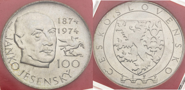Nerealizovaný návrh pamětní mince 100 Kčs 1974 - Janko Jesenský. Medaile byla později vydaná společností ARTIA.Značená Próba