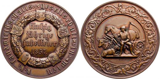 Medaila na vybudovanie pomníka poľného maršala grófa Josefa Radeckého; Kvalita: About EF; Mincovna: Viedeň; Váha: 121,3 g; Průměr: 67,7 mm; Reference: Wurzbach: 9331;