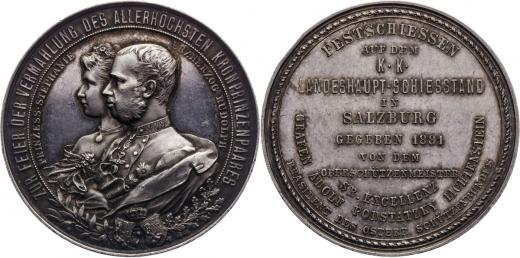 Strelecká medaila Salzburg 1881; Kvalita: Good EF; Mincovna: Viedeň; Váha: 21,1 g; Průměr: 39 mm; Reference: Hauser:5111;