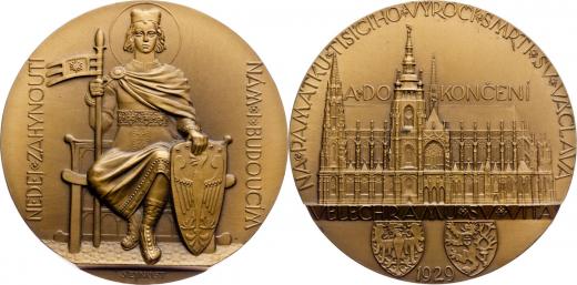 Bronzová medaila Svätý Václav - Dokončenie velechrámu Sv. Víta v Prahe 1929.; Kvalita: UNC; Mincovna: Kremnica; Váha: 113,5 g; Průměr: 70,4 mm; Reference: N.(2012): VII. D; Poznámka: , Razených 1500 kusov, R! vzácna, etua..