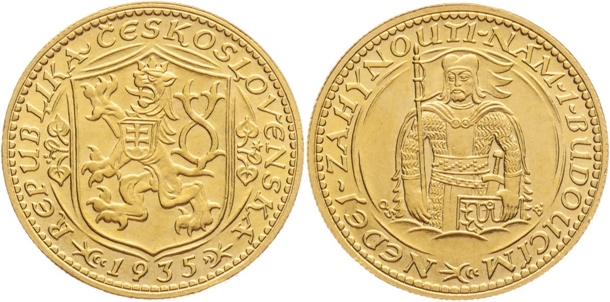 Kremnica, 19,75 mm, 3,5 g, Au R! Vzácny. Škrabance, hrana, vyrazených 13178 ks.