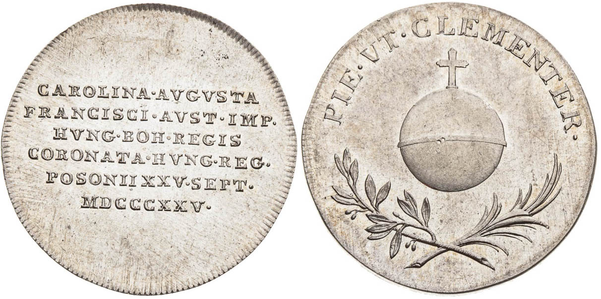 Žeton 1825, Karolína Augusta (manželka Františka II.) - korunovace v Bratislavě