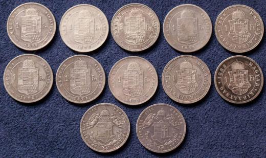 Zlatníky (12 ks), 1868GYF, 1868KB, 1870GYF, 1871KB, 1872KB, 1874KB, 1878KB, 1879KB, 1881KB, 1882KB, 1883KB, 1886KB,