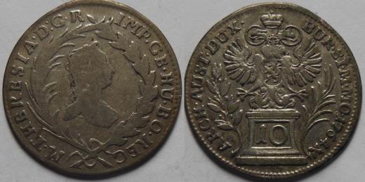 10 krejcar 1764, Praha - Erdmann, MKČ 1961,.3,6g, mírně setřelý, patina