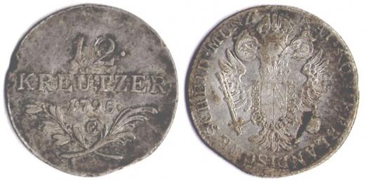 12 krejcar 1795 C - Praha/Kendler, MKČ 2041, vada kovu střížku, nedoražený