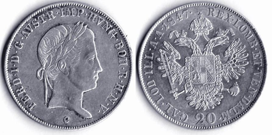 20 krejcar 1847, Praha - Leitner, MKČ 2055, .6,6g, dr rysky v ploše, patina,