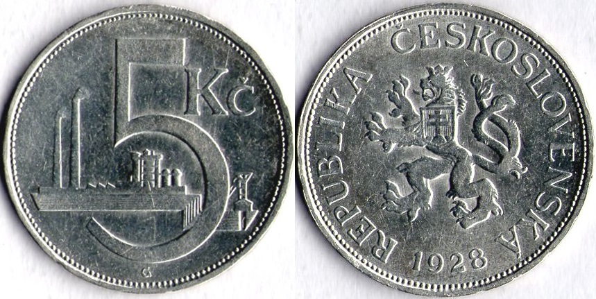 5 Kč 1928, var: b - Nov.9, dr škr v ploše…R