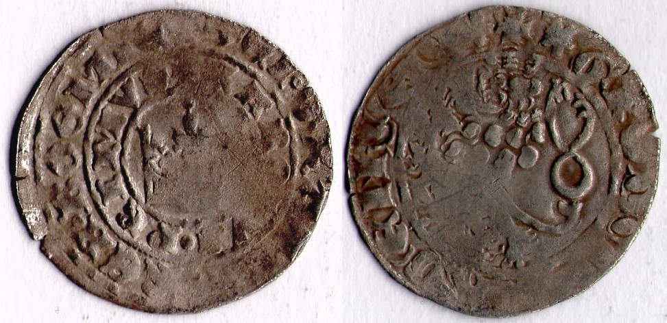 Pražský groš bez let - Ves 1,...3,25g, rubní značka Vor. IIIc rohlíček, stopy klopování, otisk okraje sousední mince z klop sloupku