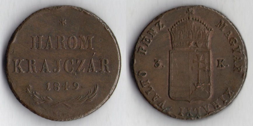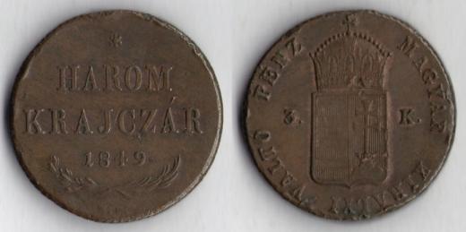 3 krejcar ( HÁROM KRAJCZÁR ) - 1849 NB Nagybanya - Nov.86, dr úhozy v ploše