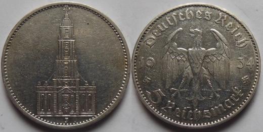 5 Mark 1934 J - kostel bez data v Av., KM.83...13,98g, Ag(900/1000)