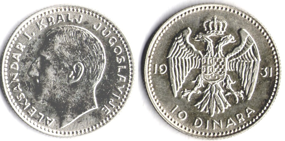 10 Dinar 1931 - Londýn, KM 10, Ag 7g (500/1000)