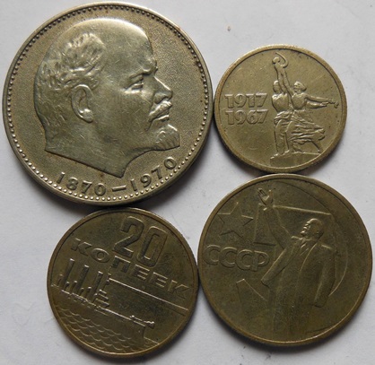 Konvolut - 1 Rubl 1970 (100 let od narození Lenina), 50 kopějek (50 let SSSR), 20 kopějek 1967 (50 let SSSR) a 10 kopějek 1967 (50 let SSSR)...4ks