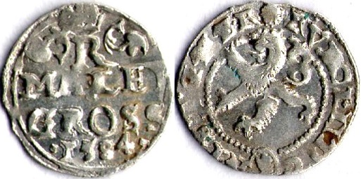 Malý groš 1584, Kutná Hora/Šatný, HN1b/7a.1,0 g, Var. v Av: letop. není rozdělen tečkami