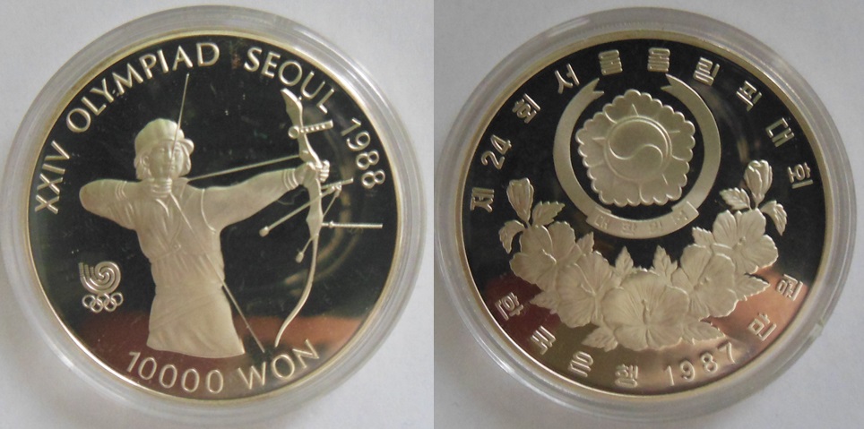 10.000 Won - 1987, Olympiada Soul, kapsle+certifikát, KM 62, Ag 33,62g (925/1000), 40mm