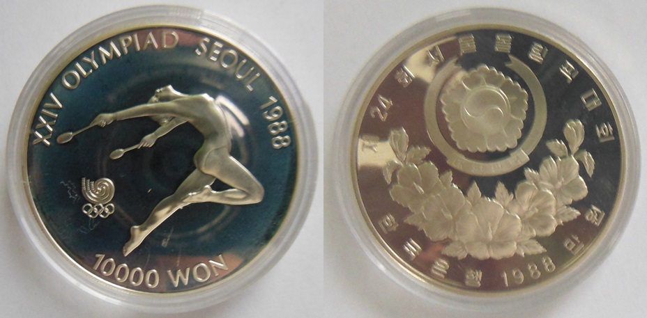 10.000 Won - 1988, Olympiada Soul, kapsle+certifikát, KM 74, Ag 33,62g (925/1000), 40mm