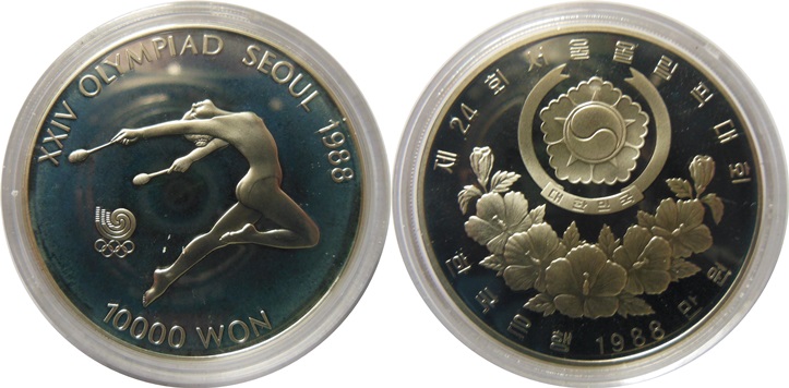 10.000 Won - 1988, Olympiada Soul, kapsle+certifikát, KM 74, Ag 33,62g (925/1000), 40mm