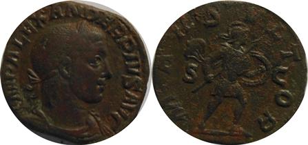 AE Sestercius - R: kráčející Mars s oštěpem a štítem, "MARS VLTOR" R.I.C. 635,..2,4g, ražba Řím 222-226, mírně nedoraž Rev