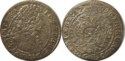 3.krejcar 1709, Praha - Egerer, MKČ 1721, pórovitý, mělká ražba,