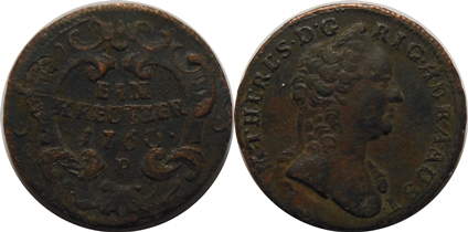 1 krejcar 1760, Praha "P" - Erdmann, MKČ 1980, dr hrana, patina
