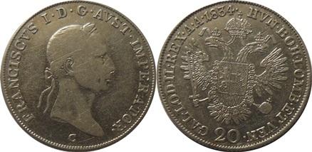 20 krejcar 1834, Praha - Hippmann, MKČ 2040, mír setř portret