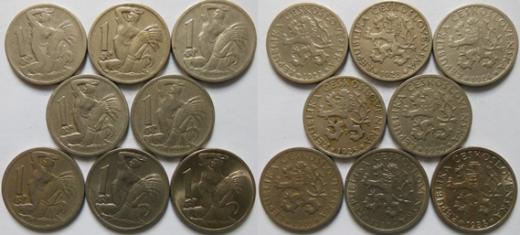 1 Kč 1922, 23 24, 25, 29, 30 =R= 37, 38 - Nov.7 .8ks