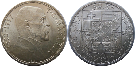 20 Kč 1937 TGM - Nov.14, 12g Ag(700/1000)