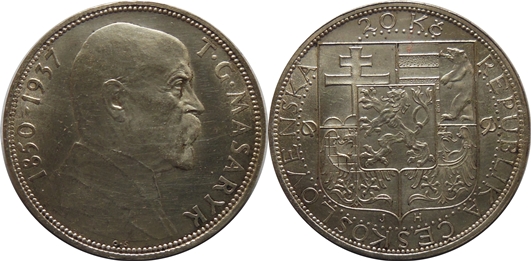 20 Kč 1937 TGM - Nov.14, 12g Ag(700/1000)