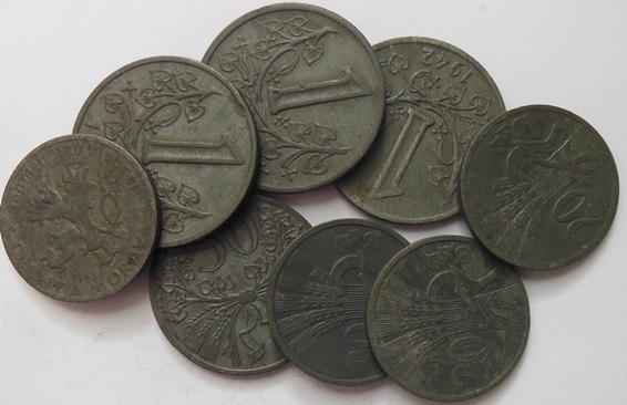 1 Kč 1942(3x)Nov.23, 50 hal 1941 Nov.22 a 20 hal 1941(2x) a 1942(2x) Nov.21...8ks