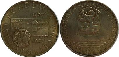 10 Kčs 1967 - Nov.112 500. výročí založení Academie Istropolitany, dr vlas škr v ploše, patina