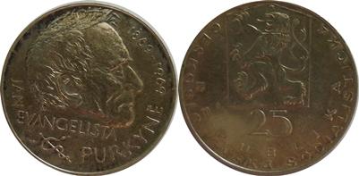 25 Kčs 1969 - Nov.116 - 100.výročí úmrtí J.E.Purkyně, dr škr v ploše, patina