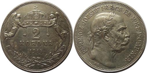 2 Koruny 1914 KB =R= - Nov.80, 10g Ag(835/1000), dr škr v ploše