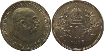 1 koruna 1915 - bez zn - Nov.75, vlas škr v ploše