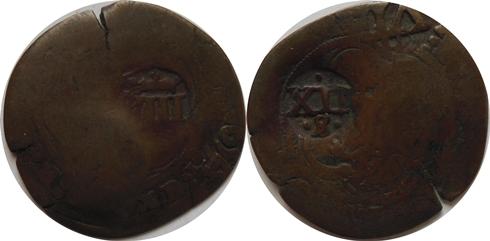 Mince s gotickým "REX", kontramarkováno, Philip III. 1598-1621, obě strany značeny VIII (jedna s korunou)...8 Maravedis, Philip IV. 1621-65, 2x raz 1654 a XII S, zvýšena hodnota na 12 Maravedis...30mmm, 6,14g
