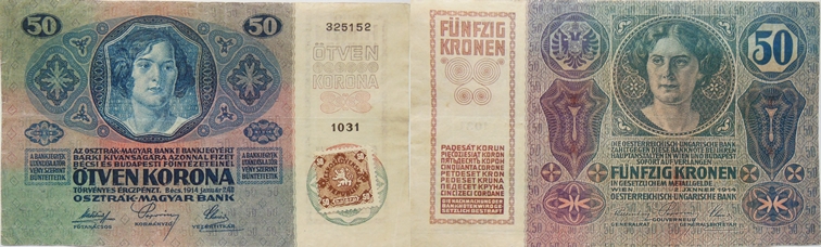 50 Korun 1914, 165x101mm, BHK-4, s. 1031, lepený kolek 50h