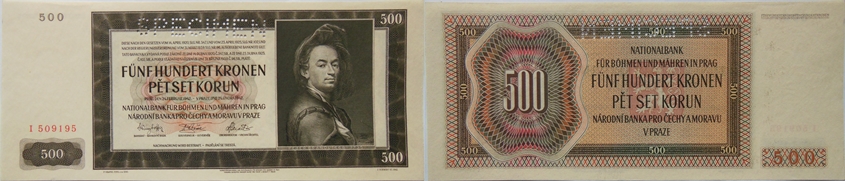 500 Koruna 1942, 197x85mm, s.I, BHK-35, I.vydání, SPECIMEN