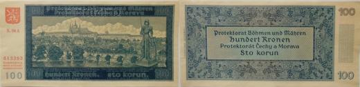 100 Koruna 1940, 170x83mm, S.04A, BHK-33a, II.vydání, SPECIMEN