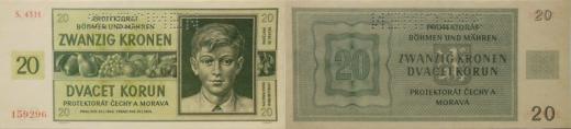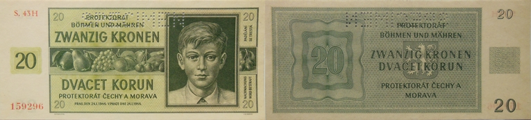 20 Koruna 1944, 157x72mm, S.43H, BHK-40c, SPECIMEN