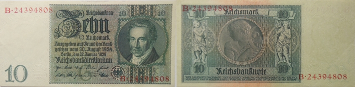 Německo - 10 Mark 1929, 160X70mm,podtisk písmeno.G, BHK.D2b, mírové vydání, oběh 15.3.1939-10.5.1945, Pick.180, 1x přeložena