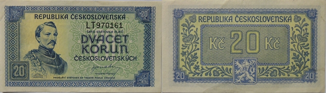 20 Korun bez let.(1945), 117x67mm, s.LT, BHK-72,