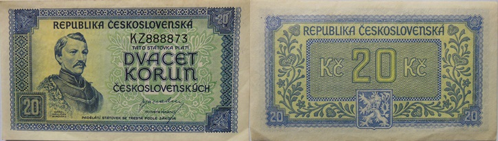 20 Korun bez let.(1945), 117x67mm, s.KZ, BHK-72, nepatr ohlý roh